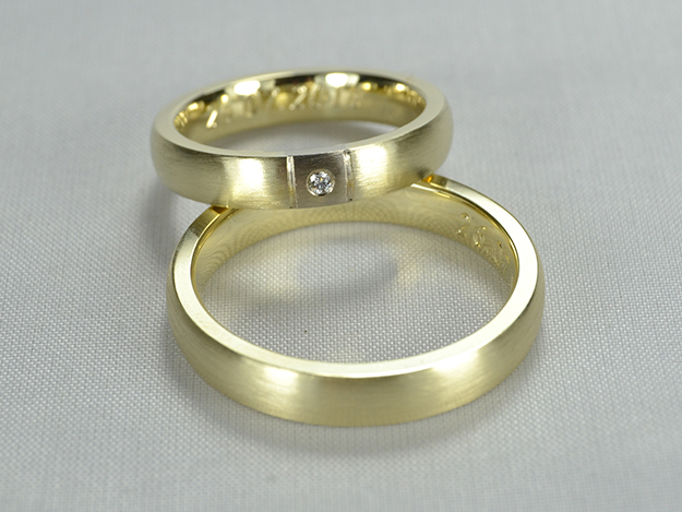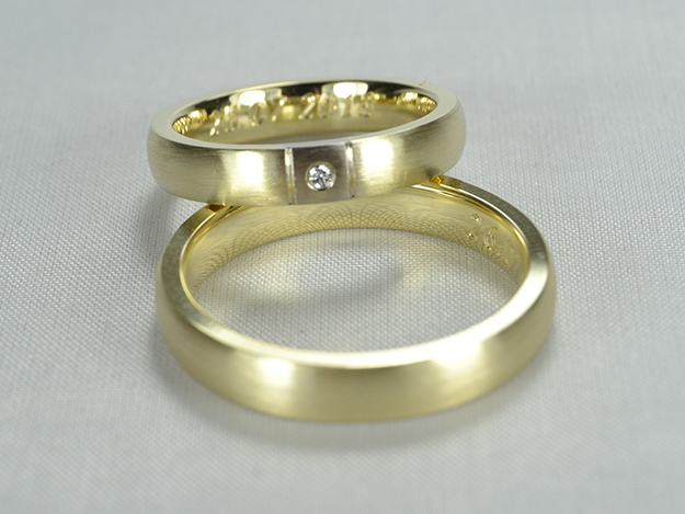 Trauringe in Gelbgold mit Weißgold und Brillant