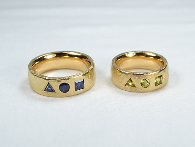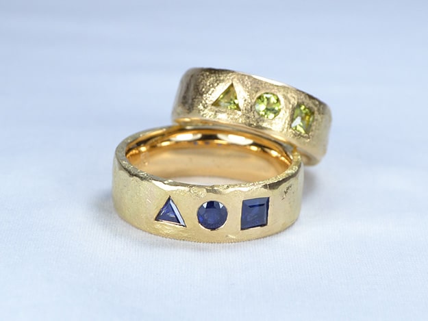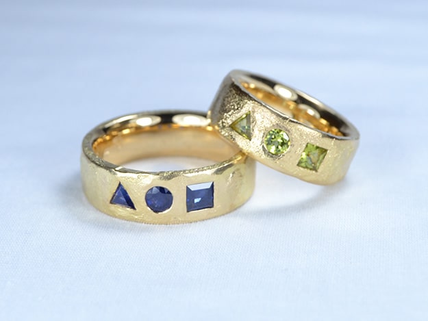 Eheringe in 750/000 Gelbgold mit Safiren und Peridot