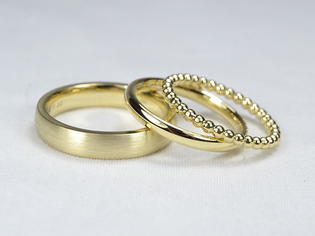 Der Ehering – oder Trauring – ist vermutlich das meist getragene Schmuckstück. Er hat seit der Antike alle Zeitenwenden überstanden, alle Moden durchlebt und ist doch ein Klassiker geblieben. Trauringe begleiten uns im besten Fall ein Leben lang – und daher ist es nicht nur wichtig, dass sie zu Ihren Persönlichkeiten passen und Ihre Geschichte aufnehmen, sondern auch, dass Sie sich nicht an ihnen satt sehen. Ihre Trauringe berechne ich im Übrigen wie jedes andere Schmuckstück auch – anlassbezogene Aufschläge gibt es bei mir nicht.