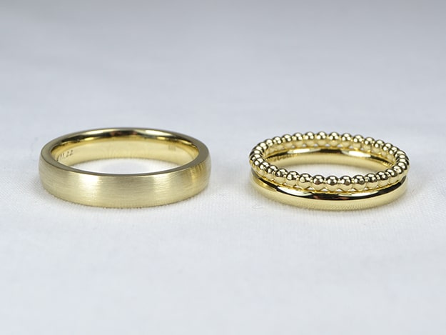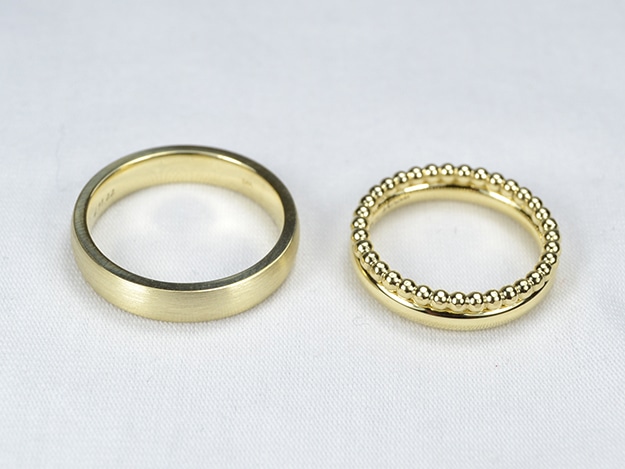 Ehering in 585/000 Gelbgold, der Damenring gleich mit Vorsteckring.