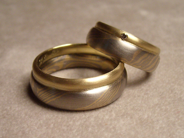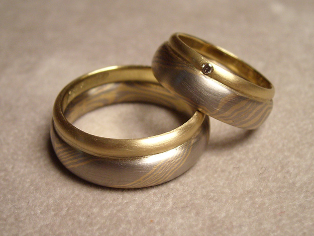 Trauringe Gelbgold verbreitert mit Mokume Gane