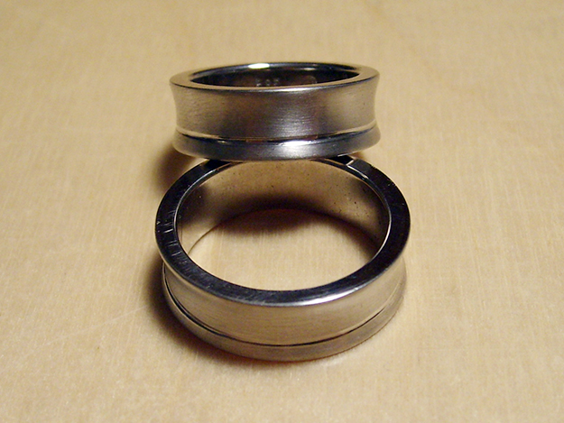Breite Ringe in 585/000 Weißgold mit Hohlkehle und Rille.