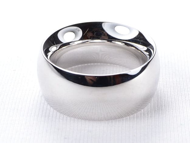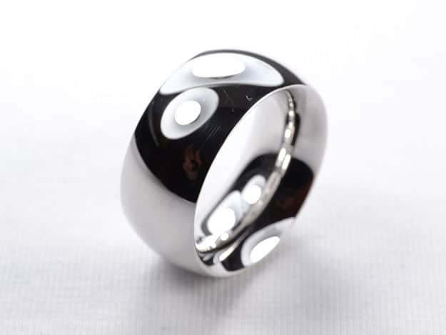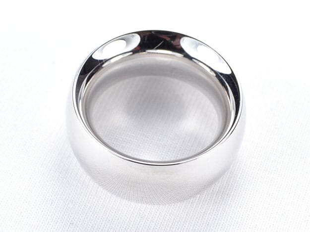 Sehr breiter, hoher 333/000 Weißgoldring, glatt poliert.
