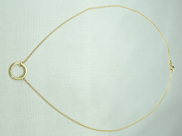 Kurze 1,5mm Ankerkette in 585/000 Gelbgold, mittig große Öse eingearbeitet.