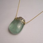 Kette Silber mit Anhänger mit grünem Bernstein, behandelt