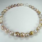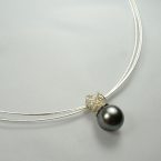 Bräunliche Rohdiamantkette mit Südsee-Perlen und Gold